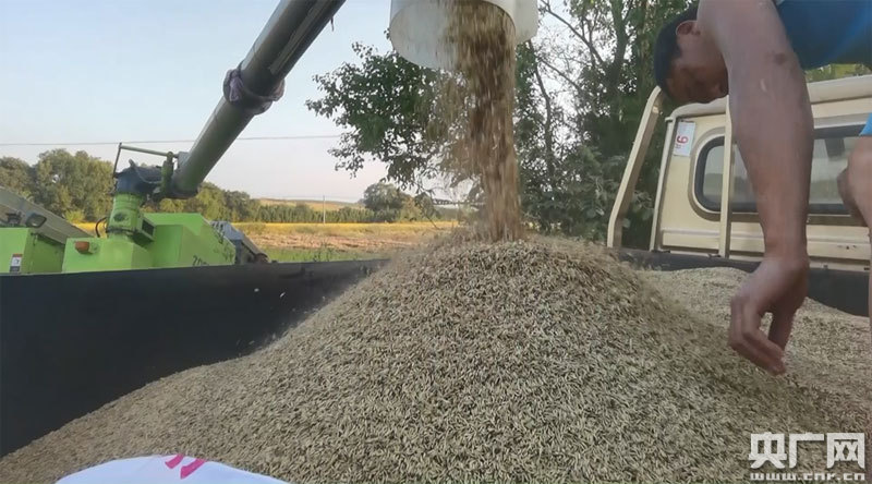 農(nóng)民在收割稻谷(央廣網(wǎng)發(fā) 通訊員供圖)