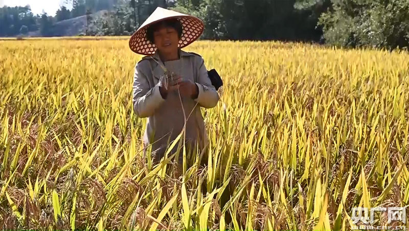 貴溪市泗瀝鎮(zhèn)農(nóng)民葉桂梅查看水稻長勢(央廣網(wǎng)發(fā) 通訊員供圖)