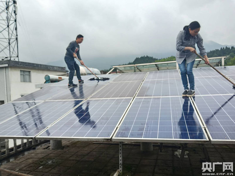 貧困戶正在清洗光伏板(央廣網(wǎng)發(fā) 通訊員供圖)