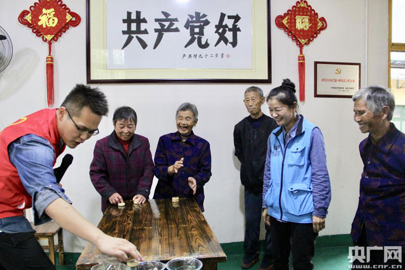 黨員志愿者帶著“入家”老人玩起趣味游戲(央廣網(wǎng)發(fā) 通訊員供圖)