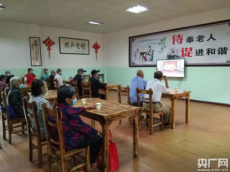 鈐東街道礦建社區(qū)頤養(yǎng)之家老人在集中觀看全國“兩會”(央廣網(wǎng)發(fā) 通訊員供圖)