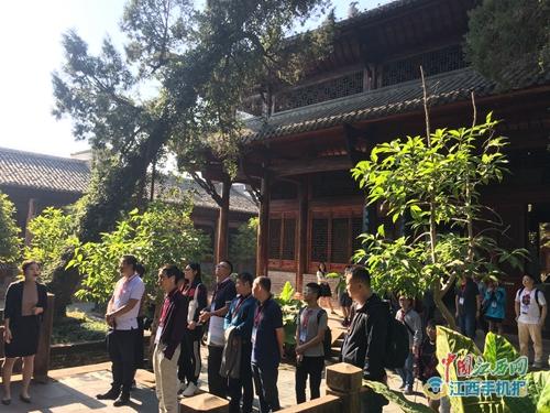 采訪團(tuán)從書院廊橋一路行至白鷺洲書院景區(qū),仿佛穿越到了古時候,濃郁的歷史文化氣息撲面而來。來到白鷺洲書院門口,記者們不禁駐足在文天祥的塑像前,在講解員的生動講訴中深切感受到了文天祥不屈不撓的高貴品質(zhì)。從道心堂漫步到云章閣,記者們紛紛舉起手中的相機(jī)、手機(jī)記錄下這難能可貴的文化景象。