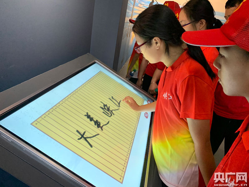 “里面的服飾好漂亮。”謝姓孩子在參觀時隔著玻璃櫥窗認真看著傣族服飾!皩в伟⒁陶f可以留言,我寫下了大美峽江。”汪姓同學靦腆地說。“原來這些民族有這么多精彩的故事,風雨橋,太棒了!饼徯胀瑢W站在風雨橋前駐足不前。