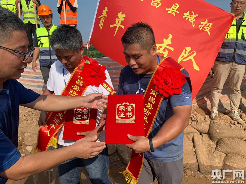 央廣網(wǎng)南昌7月15日消息(記者鄧玉玲 通訊員劉婧)“感謝你在全縣防汛抗洪工作中,不畏艱難、頑強(qiáng)拼搏,連續(xù)奮戰(zhàn),并且表現(xiàn)突出、成績顯著,經(jīng)防汛抗旱總指揮部研究,決定予以表彰!7月14日,在堤壩上、在臨時搭建的板房外、在分指揮部會議室內(nèi)......一場場特別的表彰儀式,在南昌縣防汛抗洪一線舉行。