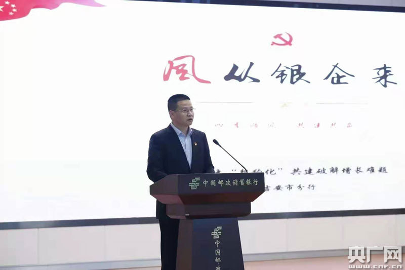 郵儲(chǔ)銀行吉安市分行黨委書記、行長(zhǎng)鐘暉現(xiàn)場(chǎng)展示吉安市分行“黨旗領(lǐng)航”項(xiàng)目成果