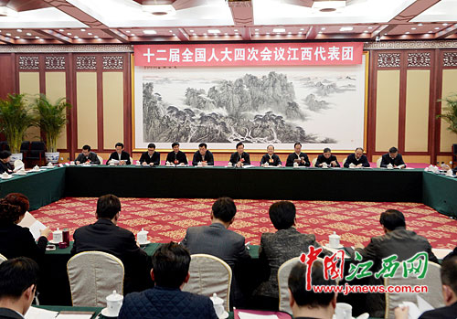 3月3日下午,十二屆全國人大四次會議江西代表團舉行全體會議。
