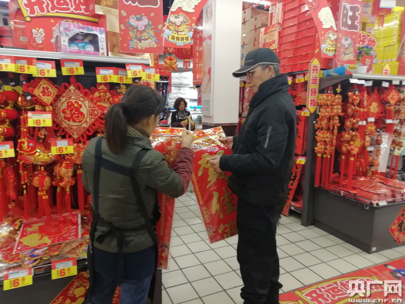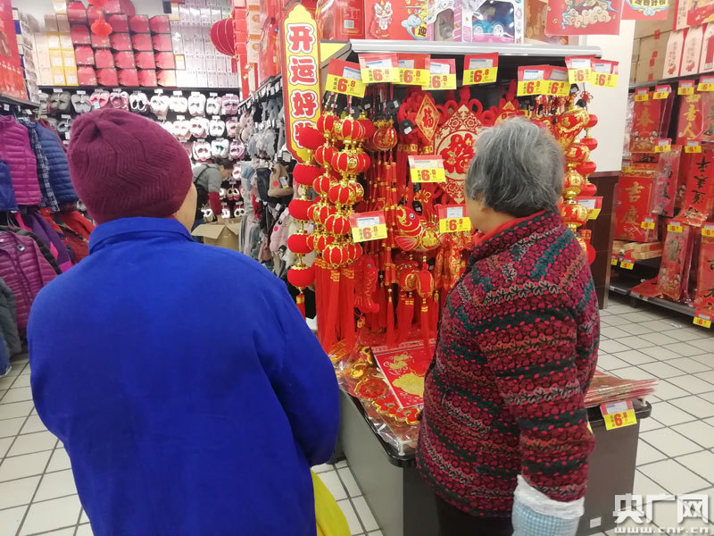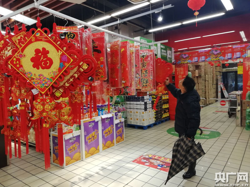 除了購買年貨禮盒外,還有一些新年特色的物件等,也是年貨的首選之物,而大多數(shù)市民都會首選對聯(lián)、紅燈籠和“!弊謷祜椀,這些物件不僅是春節(jié)的傳統(tǒng)象征,更能體現(xiàn)出老人們對明年紅火日子的企盼!敖裉祀S老伴來超市主要是為了買春聯(lián),也預(yù)祝明年能夠像對聯(lián)上說的一樣,好運(yùn)不斷。”老人笑著說道。