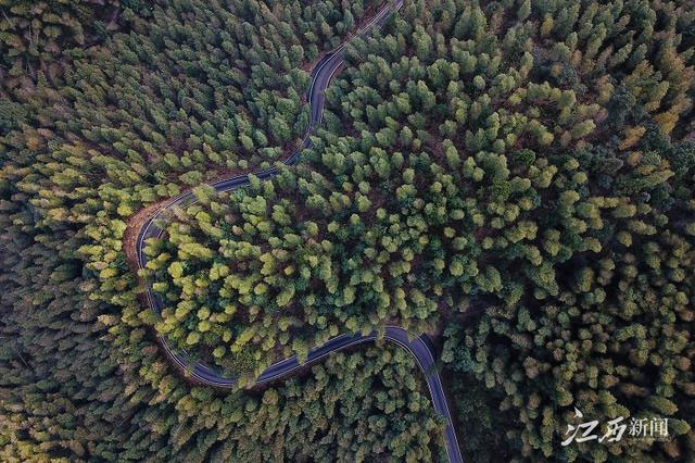 無(wú)人機(jī)航拍井岡山神山村公路。攝影丨江西日?qǐng)?bào)記者洪子波