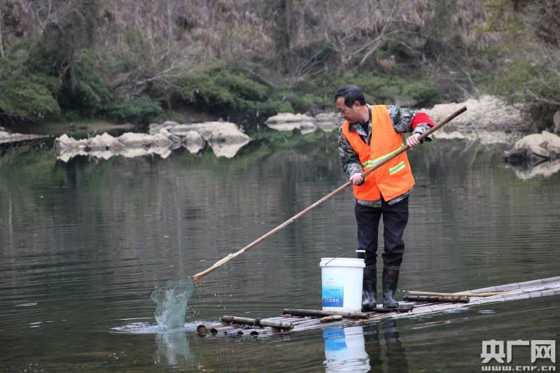 央廣網(wǎng)遂川1月26日消息(記者胡斐 通訊員袁衛(wèi)生、劉祖剛)1月25日,大年初一,一大早,被譽(yù)為江西省最美的河流--蜀水,籠罩了一層薄霧,氤氳著潤澤。與穿新衣、拜大年的村民不一樣,遂川縣雙橋鄉(xiāng)灣洲村河長江路昌,照例穿起那件熟悉的救生衣,拿著抄網(wǎng),撐著竹筏去巡河。因?yàn)榭爝^年,垃圾量較平時多了好幾倍,他要去看看是否有“漏網(wǎng)”垃圾漂浮在河面,或者滯留在岸邊的枝枝叉叉。