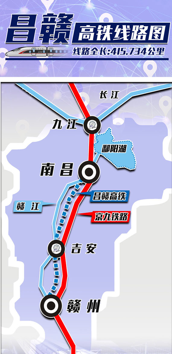 昌贛高鐵建成后,與滬昆高鐵共同構(gòu)成了江西省“十”字形的高速鐵路主骨架,江西將實現(xiàn)市市通動車,井岡山革命老區(qū)、贛南等原中央蘇區(qū)也將正式邁入高鐵時代。昌贛高鐵通車將極大拉近江西省內(nèi)各地的時空距離,屆時南昌至贛州乘高鐵只需要兩個小時就能到達(dá)。江西省將形成以省會南昌為中心,覆蓋全省設(shè)區(qū)市的“2小時生活圈”,以及輻射粵、閩、湘、浙、滬、皖、鄂等周邊省市的 4小時“高鐵朋友圈”。目前,贛州至深圳的贛深高鐵正在建設(shè)中,計劃于2021年實現(xiàn)全線貫通,屆時,江西將與粵港澳大灣區(qū)、閩東南、長三角經(jīng)濟區(qū)實現(xiàn)高鐵互聯(lián)互通。