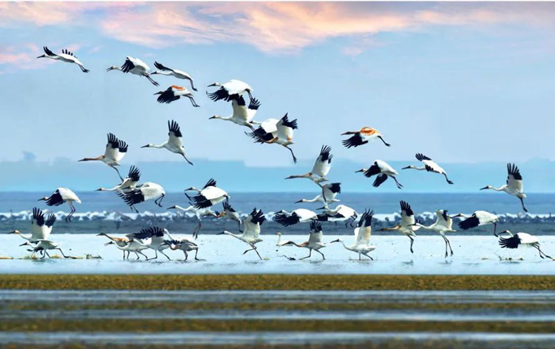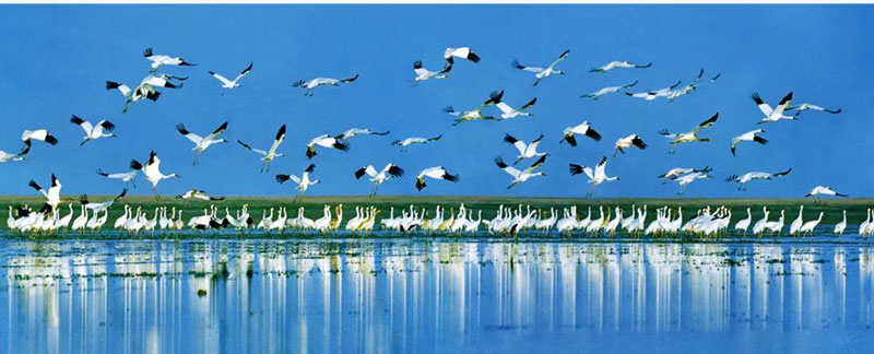 白鶴是一種極度瀕危物種,全球僅有4000只左右,有鳥(niǎo)類(lèi)“活化石”之譽(yù)。白鶴在中國(guó)寓意延年益壽、吉祥如意,是江西“省鳥(niǎo)”,亦是江西生態(tài)環(huán)境優(yōu)良的代名詞。