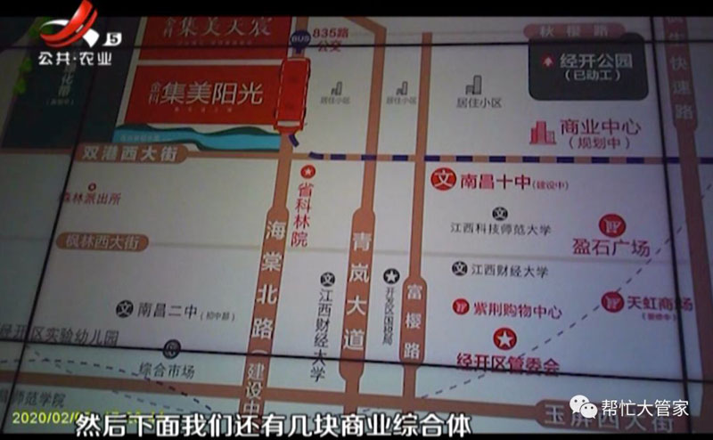 金科集美陽(yáng)光置業(yè)顧問(wèn): 然后我們周邊的話,是有幾個(gè)配套的設(shè)施,北側(cè)這邊有圣德醫(yī)院,東有經(jīng)開(kāi)動(dòng)物園,學(xué)校的話有昌北二小和南昌十中,然后下面我們還有幾塊商業(yè)綜合體,這幾塊綜合體馬上要開(kāi)拍了,然后盈石廣場(chǎng)和天虹商場(chǎng)就在我們小區(qū)周邊,(記:這個(gè)還沒(méi)建是吧?商業(yè)地這一塊?)這塊地馬上有開(kāi)發(fā)商把它拍下來(lái)了。