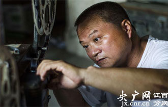 在吉安市峽江縣,人們經(jīng)常會(huì)看到鄉(xiāng)村電影放映師謝萍果忙碌的身影。
