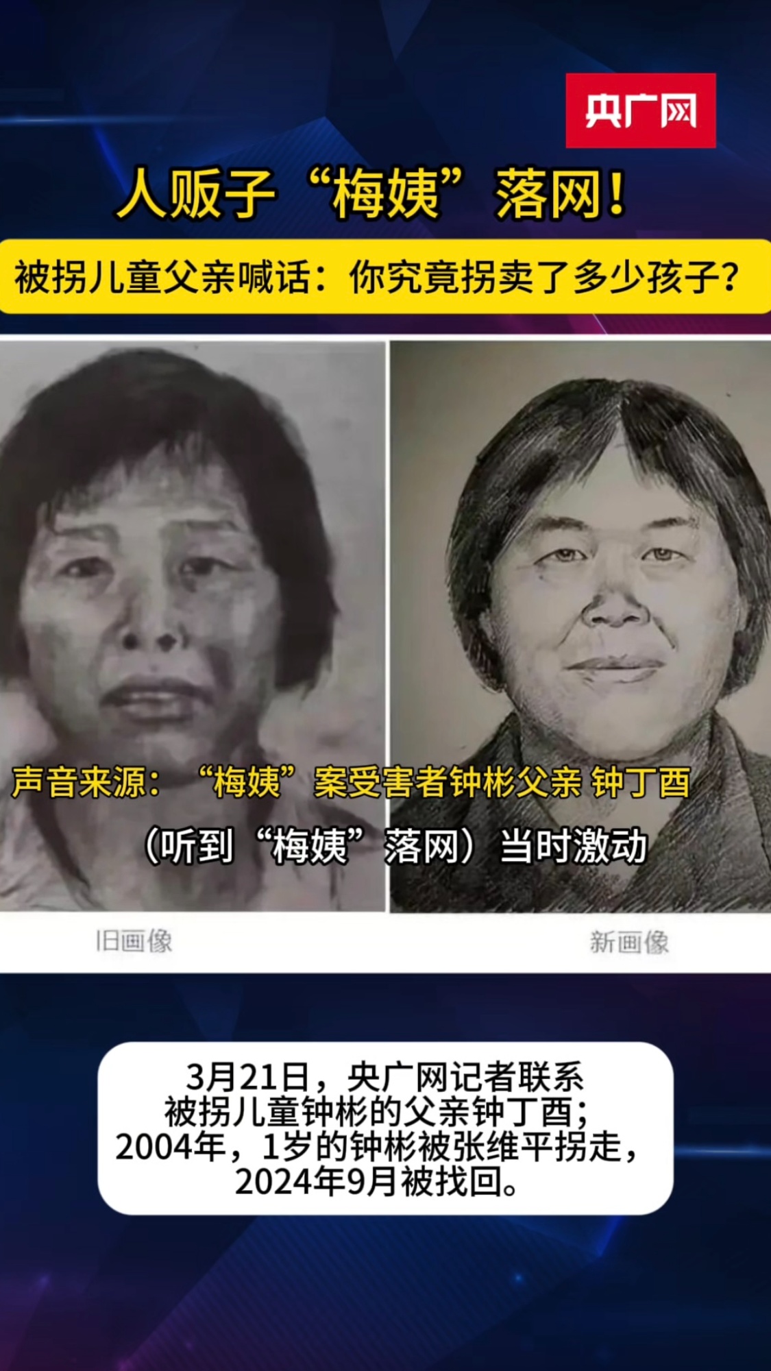 “時(shí)隔多年!人販子‘梅姨’終于落網(wǎng)了!”3月22日,民警汪挺向央廣網(wǎng)記者激動(dòng)地說(shuō)道。