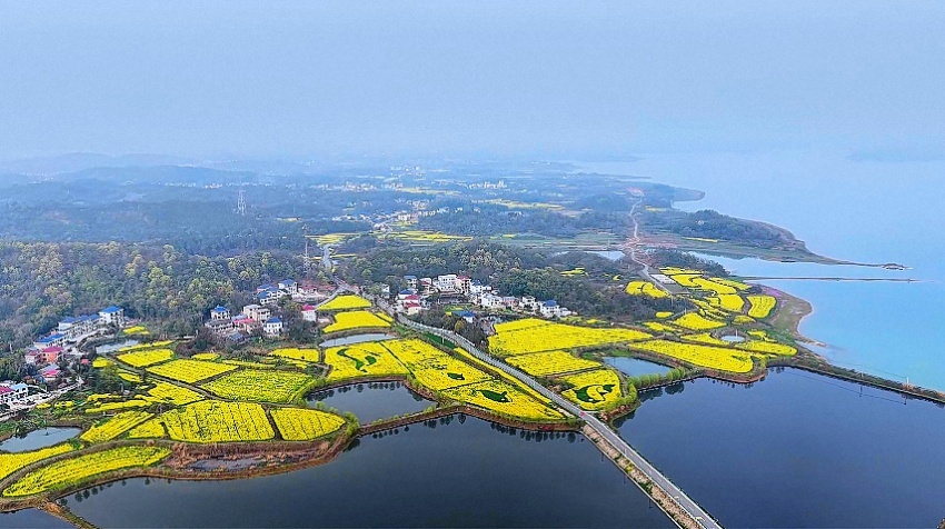 江西湖口:油菜花海繪生態(tài) “微笑天使”逐浪來(lái)