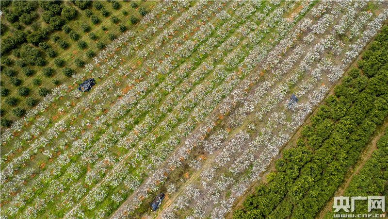 2021年3月15日,江西省新余市渝水區(qū)羅坊鎮(zhèn)王年村翠冠梨生態(tài)種植園,梨花綻放白如雪。數(shù)千畝果業(yè)基地內(nèi),一簇簇梨花隨風搖曳引來蜜蜂無數(shù)。果農(nóng)忙碌于開溝施放有機肥、疏花等春管作業(yè)。春管保果關(guān)鍵期,當?shù)毓r(nóng)搶抓有力天氣對梨樹進行精細管理,為豐收增收做足準備。(記者胡斐 通訊員趙春亮)
