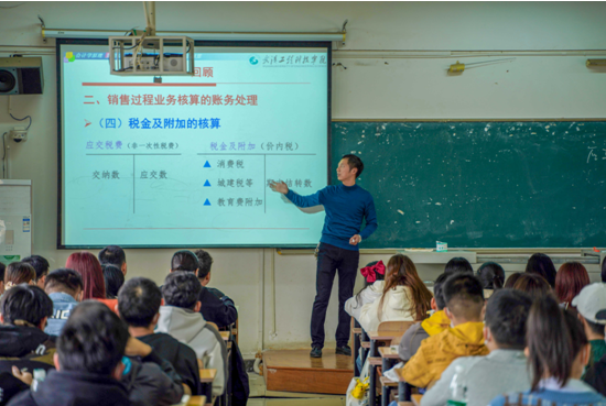 課堂上,涂淼外套一脫,袖子一擼,講臺就成了他的舞臺。他用豐富的肢體語言為大家生動地講解課程知識,哪怕是枯燥的理論知識,在他的課堂里也成了令人享受的一部分。他巧用比喻,手中的書本也可以成為課堂的例子,幫助學(xué)生理解增值稅。他語言幽默風(fēng)趣,當講到個人所得稅的起征點時,涂淼說:“如果沒有起征點,一個月一千塊工資你連自己都養(yǎng)活不了你拿什么去交稅?”引得同學(xué)陣陣歡笑。在他的課堂上,只要提出問題就不會冷場,無論是舉手還是齊聲回答,都能感受的學(xué)生們的熱情,哪怕是坐在最后一排的學(xué)生都伸長了脖子,目不轉(zhuǎn)睛地盯著老師。