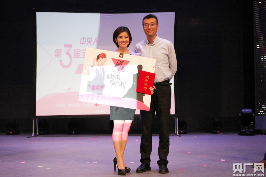 央廣網(wǎng)北京5月22日消息 由中央人民廣播電臺(tái)主辦、央廣網(wǎng)承辦的第三屆全國(guó)大學(xué)生主持人大賽北京賽區(qū)決賽今晚在中華女子學(xué)院舉行。中央人民廣播電臺(tái)綜藝節(jié)目中心副主任魏勝利在現(xiàn)場(chǎng)揭曉,選手鐘智瑤入選《快樂早點(diǎn)到》女主播資格。