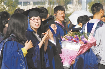 姹紫嫣紅的校園里,教學(xué)樓正面一行大字格外醒目——“讓我們的今天賽過(guò)昨天”。