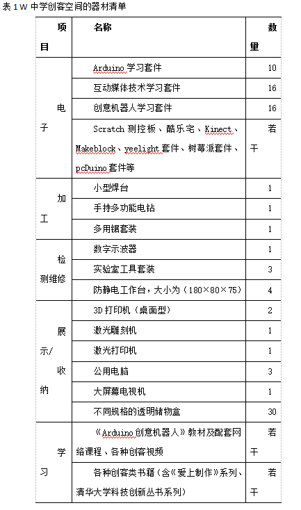 表1 溫州中學(xué)創(chuàng)客空間的器材清單
