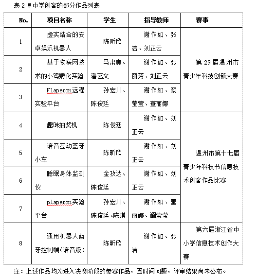 表2 溫州中學(xué)創(chuàng)客的部分作品列表
