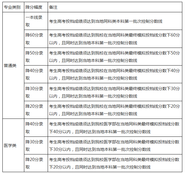 注:1、以上降分幅度為高考總分750分制省份執(zhí)行標(biāo)準(zhǔn)。高考總分非750分制省份降分幅度按比例折算,具體降分幅度以最終認(rèn)定通知為準(zhǔn);2、對于合并本科批次的省份,“本科第一批次控制分?jǐn)?shù)線”按相關(guān)省級教育行政部門或招生考試機(jī)構(gòu)確定的自主招生相應(yīng)最低錄取控制分?jǐn)?shù)線執(zhí)行;3、上海市、浙江省獲得相關(guān)優(yōu)惠條件的考生,具體政策以最終認(rèn)定協(xié)議為準(zhǔn)。