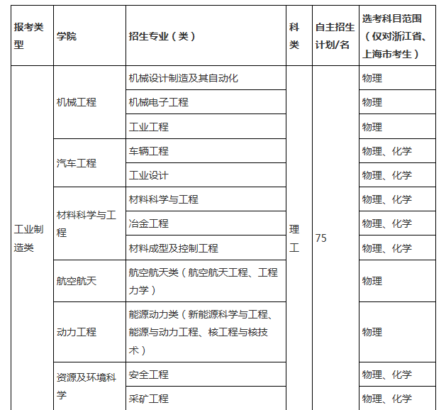 考生依據(jù)文理科只能選擇一個(gè)報(bào)考類型,其中浙江省、上海市考生不分文理,可選擇任一報(bào)考類型,但選考科目中至少一科與我校專業(yè)(類)的選考科目范圍匹配。具體報(bào)考類型內(nèi)的招生專業(yè)(類)見附表《重慶大學(xué)2017年自主招生專業(yè)目錄》。
