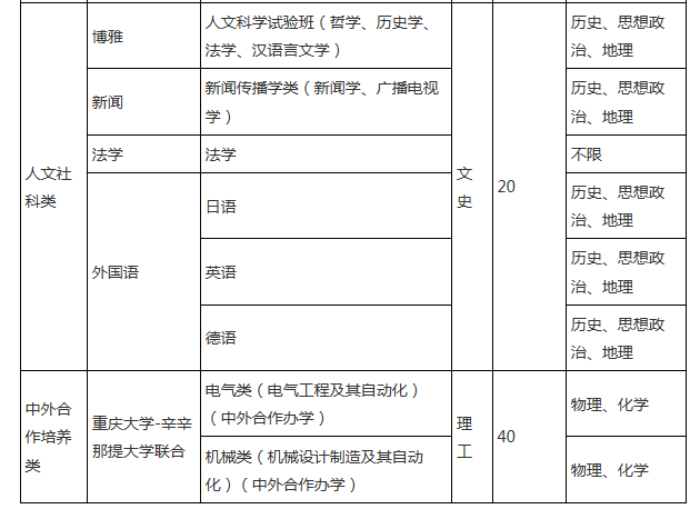 5.具備良好英語能力,且理工基礎(chǔ)扎實(shí),有意向進(jìn)入重慶大學(xué)-美國辛辛那提大學(xué)聯(lián)合辦學(xué)項(xiàng)目學(xué)習(xí)的優(yōu)秀畢業(yè)生可報(bào)考中外合作培養(yǎng)類,須提供相關(guān)證明材料,經(jīng)我校專家組評(píng)審認(rèn)定。