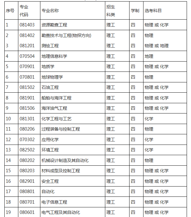 中國(guó)石油大學(xué)(華東)自主招生專(zhuān)業(yè)目錄