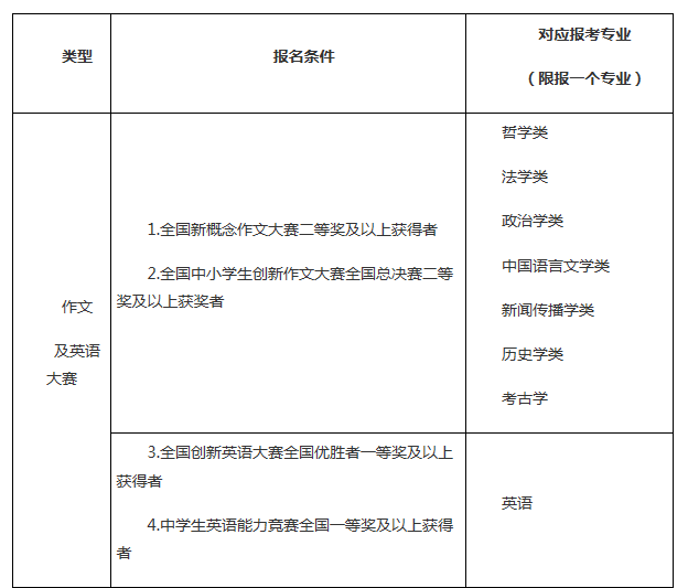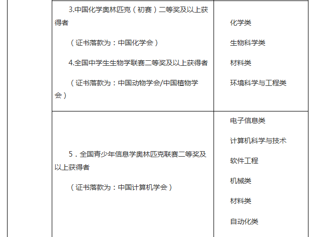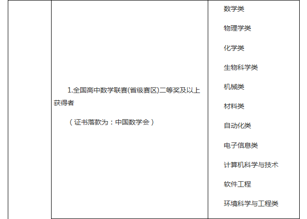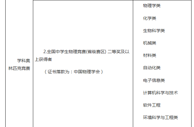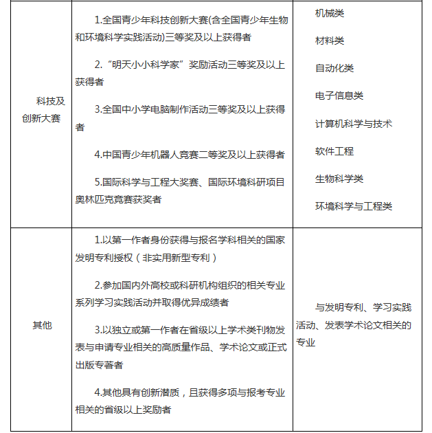 品行端正、誠實守信、遵紀守法,學科特長突出、具備創(chuàng)新潛質(zhì),符合2017年全國普通高等學校統(tǒng)一招生考試報名條件的優(yōu)秀高中畢業(yè)生。高中階段參加以下競賽活動獲獎者或符合下列條件者,根據(jù)獎項或?qū)W術水平擇優(yōu)初審通過: