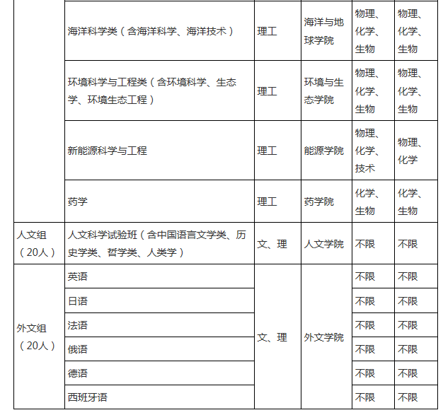 我校設(shè)置數(shù)學、物理、化學、生物學、信息學、人文、外文七個學科考核組別,并按照七個學科考核組確定參加考核名單和入選資格考生人數(shù)。各考核組別招生計劃及相關(guān)相近專業(yè)(類)詳見廈門大學2017年自主招生計劃表。我校將根據(jù)實際報考生源情況微調(diào)各考核組別招生計劃。