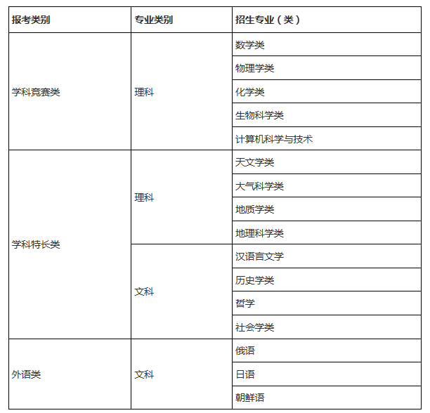 1.報考理科專業(yè)(類)的考生,高中階段在數(shù)學(xué)、物理、化學(xué)、生物學(xué)、信息學(xué)奧林匹克競賽任一學(xué)科中獲得省級賽區(qū)一等獎項(xiàng),或兩個及以上不同學(xué)科的二等獎項(xiàng),或在某一學(xué)科領(lǐng)域具有突出表現(xiàn)和較強(qiáng)的發(fā)展?jié)撡|(zhì)(申請報名考生需提供相關(guān)證明材料);