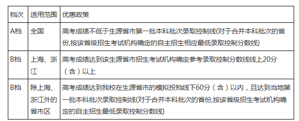 獲得我校自主招生認(rèn)定資格的考生,在高考自主招生志愿中填報(bào)我校及我校指定專業(yè),在高考錄取時(shí)可以享受下列優(yōu)惠政策,并按公示專業(yè)予以錄。