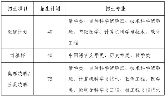 各項目考生均須滿足誠實守信、遵紀(jì)守法等基本德行要求,接受各項目選拔程序和辦法,同時對相關(guān)學(xué)科持有堅定的理想信念。各項目具體報名條件及選拔辦法如下:
