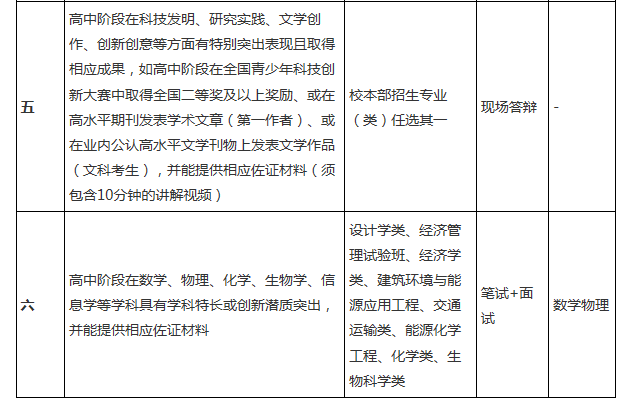 3、報(bào)考類別五的考生須提交10分鐘左右由學(xué)生本人對(duì)研究成果進(jìn)行講解的視頻,如研究成果為非學(xué)術(shù)文章類的,還須提交研究成果的詳細(xì)文字材料,F(xiàn)場(chǎng)答辯采用ppt講解形式,講解ppt及其他演示材料由考生自行準(zhǔn)備。類別五認(rèn)定人數(shù)不超過(guò)我校自主招生認(rèn)定總?cè)藬?shù)的10%,請(qǐng)慎重報(bào)考。