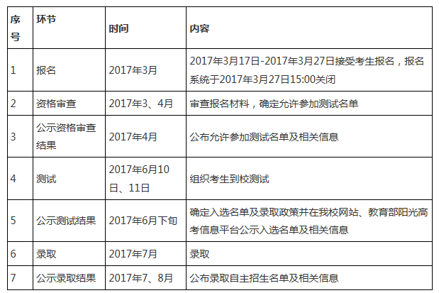 2017年自主招生工作程序見下表: