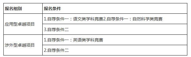 “應(yīng)用型卓越項(xiàng)目”“涉外型卓越項(xiàng)目”報(bào)名條件見下表: