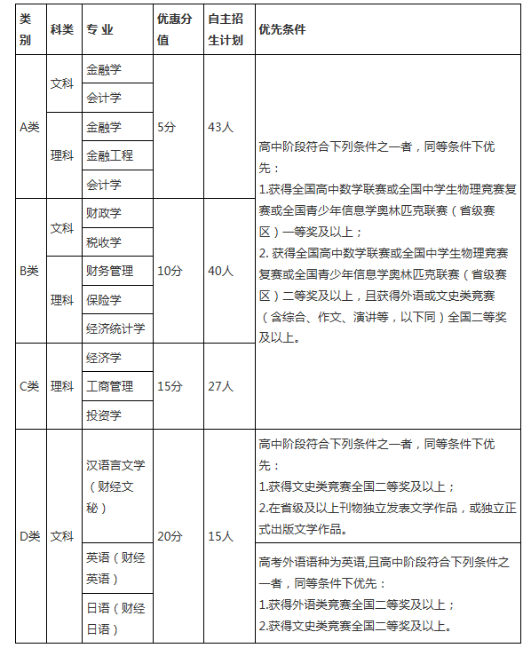 具體專業(yè)、計劃、優(yōu)惠分值和優(yōu)先條件如下: