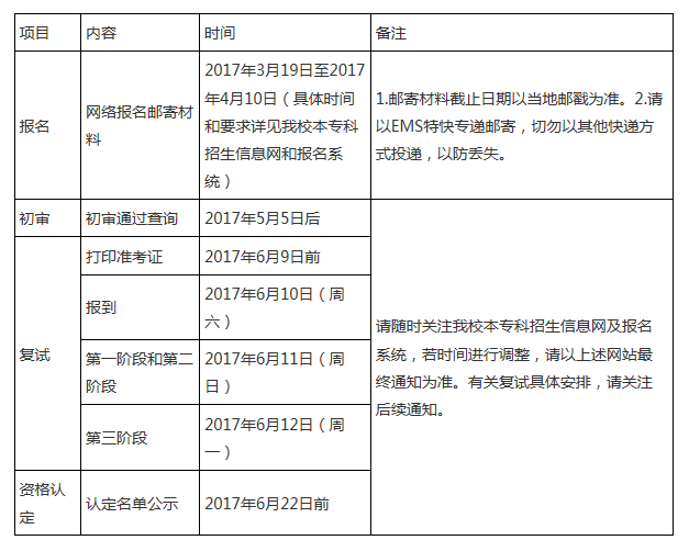 (一)初審:我校將根據(jù)考生報名材料進行初審。請于2017年5月5日后登錄報名系統(tǒng)和我校招生信息網(wǎng)查看初審結(jié)果。未通過初審的考生,我校不再另行通知。