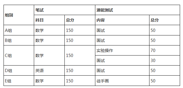 (2)潛能測試:復試當天下午進行,全面考察考生的理想、品德、誠信等素質,側重考查學生的學科特長和創(chuàng)新潛質。具體內容詳見上表。無相應考試大綱和往年試題作參考。