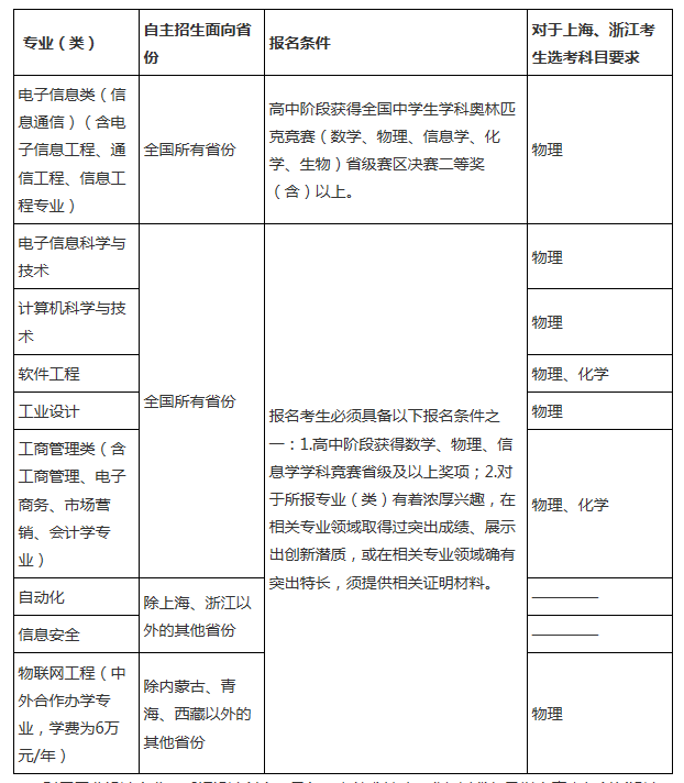 上海市、浙江省考生應(yīng)按照上述各自主招生專(zhuān)業(yè)(類(lèi))選考科目要求,并根據(jù)自身情況選擇報(bào)考。