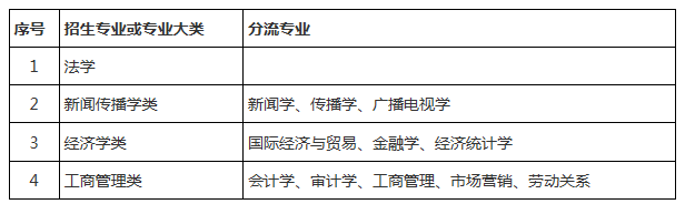 二、招生專業(yè)(均為文理兼收):法學、新聞傳播學類、經(jīng)濟學類、工商管理類。