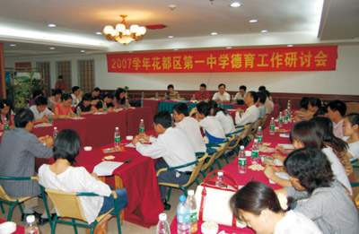 德育工作研討會 課堂教學是對學生思想政治教育最直接的渠道,學校要求全體教師要充分挖掘和利用學科教材中的德育資源,寓德育于課堂教學活動全過程,貫穿于教育教學的各個環(huán)節(jié),加強正確的人生觀和愛國主義教育。充分利用每周一次的升旗禮,籃球賽、校運會、藝術(shù)節(jié)、科技節(jié)、參觀愛國主義教育基地、觀看反邪教、禁毒電影等豐富多彩的校園文化活動,著重對學生進行愛國愛校教育、集體主義教育、革命傳統(tǒng)教育、法制安全教育、國防教育、品德教育和心理健康教育等。