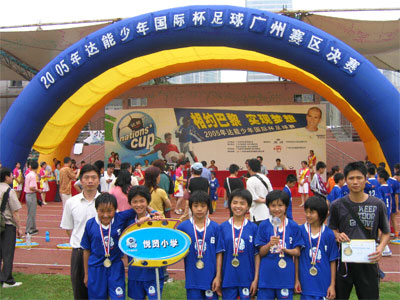 學(xué)校重視學(xué)生各方面素質(zhì)的全面協(xié)調(diào)發(fā)展,注意發(fā)展學(xué)生的個(gè)性特長(zhǎng),在提高學(xué)生文化課學(xué)習(xí)能力的同時(shí),更追求學(xué)生綜合能力的發(fā)展。傳承百年老校的“尚武”精神,由武術(shù)到體育,同時(shí)根據(jù)學(xué)校體育科教師素質(zhì)高,人員充足的有利條件,充分發(fā)展體育優(yōu)勢(shì)。 學(xué)校以體育為龍頭,全面推進(jìn)素質(zhì)教育。在素質(zhì)教育過(guò)程讓學(xué)生享受成功的樂(lè)趣,在抓好“三課”(體育課、活動(dòng)課、足球課)、“三操”(廣播操、眼保健操、足球操)的同時(shí),廣泛開(kāi)展群眾性體育活動(dòng),每年多次組織全校性的單項(xiàng)或多項(xiàng)的體育比賽活動(dòng),置學(xué)生于活動(dòng)實(shí)踐中,使學(xué)生在思想道德素養(yǎng)、科學(xué)文化素養(yǎng)、身體素質(zhì)、心理素質(zhì)、審美素質(zhì)等方面都得到發(fā)展,促進(jìn)了學(xué)生綜合素質(zhì)的提高。 2000年9月,學(xué)校結(jié)合實(shí)際,正式成立了學(xué)校女子足球隊(duì),開(kāi)設(shè)了校本課程。一是從三年級(jí)開(kāi)始,每周安排一節(jié)足球課,保證有課時(shí);二是由體育專業(yè)畢業(yè)的教師任教,保證有專職教師;三是通過(guò)活動(dòng)課及課后訓(xùn)練,提高學(xué)生足球運(yùn)動(dòng)技能,保證有教學(xué)效果;四是學(xué)校女子足球隊(duì)積極參與各級(jí)比賽,保證出成果。學(xué)校每次參加上級(jí)組織的比賽都能取得優(yōu)秀的成績(jī),經(jīng)過(guò)九年的磨練,我!芭恪逼放埔褎倮蝽懀@得“達(dá)能杯國(guó)際少年足球賽”花都賽區(qū)比賽第一、二、三名;廣州賽區(qū)比賽廣東省第二、三、五名;今年全運(yùn)會(huì)我校畢業(yè)的江美紫同學(xué)入編省女子足球二隊(duì),為廣東足球隊(duì)效力。 多年來(lái)我校注重學(xué)生身體素質(zhì)培養(yǎng),在注重群體發(fā)展的基礎(chǔ)上,努力培養(yǎng)體育尖子,取得可喜成績(jī)。如楊育欽同學(xué)獲廣東省第十一屆運(yùn)動(dòng)會(huì)柔道比賽少年男子甲組60公斤級(jí)第二名;在廣州市青少年柔道錦標(biāo)賽中,歐可滔獲男子丙組66公斤級(jí)第一名,劉錦樂(lè)同學(xué)獲男子丙組52公斤級(jí)第一名,梁潔誼獲女子丙組57公斤級(jí)第一名,鄺永鋒、張亮、梁蘭青獲第二名;張敏君同學(xué)在40公斤級(jí)獲得第四名。在取得成績(jī)的同時(shí),學(xué)校還為高一級(jí)學(xué)校輸送了大量體育人才,如楊育欽同學(xué)被選送到國(guó)家柔道隊(duì);有6人被選送到省體校柔道隊(duì);有7人被選送到廣州市女足;有6人被選送到區(qū)體校;有2人被選送到廣州市舉重隊(duì);有2人被選送到廣州市田徑隊(duì);有2人被選送到廣州市女子曲棍球隊(duì)。體育特色的創(chuàng)建,帶動(dòng)了其他學(xué)科的進(jìn)步,推進(jìn)了學(xué)生各方面素質(zhì)的提高。 悅賢小學(xué)正以不斷發(fā)展,追求卓越的精神,銳意改革,創(chuàng)全面發(fā)展之優(yōu),示素質(zhì)教育之范,努力辦成一所示范性強(qiáng)、教育質(zhì)量高、富有特色的廣東省規(guī)范化學(xué)校。