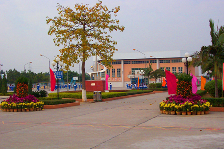 獨具一格的校門 學(xué)校簡介 花山中學(xué)位于花山鎮(zhèn)育才路2號,創(chuàng)辦于1958年,是廣東省一級學(xué)校、義務(wù)教育規(guī)范化學(xué)校、廣州市綠色學(xué)校和安全文明校園。1997年花山鎮(zhèn)政府投資2000多萬元易地新建花山中學(xué),1998年旅美鄉(xiāng)賢劉國烈捐資200多萬元建成花山體育館,2000年花山鎮(zhèn)少年業(yè)余體校在我校復(fù)辦。校園占地100畝,環(huán)境優(yōu)雅,設(shè)施齊全。目前全校教學(xué)班30個,教職工110名,在校生1588名,生均占地面積36平方米,生均建筑面積8平方米。少年體校設(shè)有籃球、田徑、舉重、體操、女足五個項目,現(xiàn)有體校生100多人。