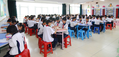 書香彌漫的閱覽室 在打造英語辦學特色的同時,學校積極創(chuàng)建“人文、書香、健康”校園。“人文校園”以創(chuàng)建充滿人文關懷的校園環(huán)境來熏陶學生,以課堂教學中滲透人文精神來感召學生,使校園環(huán)境與師生之間充滿和諧美;“書香校園”以營造濃郁的讀書氛圍點燃師生的讀書激情,促使師生以讀書為樂,養(yǎng)成終身閱讀的習慣;“健康校園”關注師生的身體健康和心理健康,組織師生進行體育鍛煉,開展心理咨詢,讓師生“健康生活每一天”。