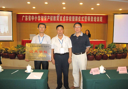 | 冠華小學被授予廣東省中小學知識產(chǎn)權(quán)教育試點學校 中廣網(wǎng)北京11月13日消息 2009年11月11日—12日,第四批廣東省中小學知識產(chǎn)權(quán)教育試點學校授牌儀式暨師資培訓班在廣東大廈舉行。我區(qū)獅嶺鎮(zhèn)冠華小學被認定為廣東省中小學知識產(chǎn)權(quán)教育試點學校,成為第四批省知識產(chǎn)權(quán)教育試點學校中廣州市唯一一間試點小學。冠華小學黃俊彬主任和盧淑慧老師參加了為期兩天的第四批廣東省中小學知識產(chǎn)權(quán)教育試點學校授牌儀式暨師資培訓班。在授牌儀式上,我校正式被認定為第四批廣東省中小學知識產(chǎn)權(quán)教育試點學校,成為廣州市花都區(qū)第一間省知識產(chǎn)權(quán)教育試點學校。