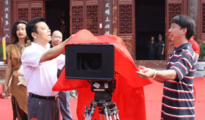 淮陽縣委書記任連軍與導(dǎo)演曹榮一起為電影《人皇伏羲》開機揭幕