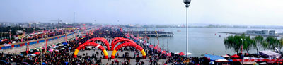 伏羲文化廣場面積64000平方米,是2004年春淮陽縣委、縣政府英明決策,拆掉蔡河兩岸不協(xié)調(diào)建筑興建而成的。它的興建,彰顯了龍湖的浩渺和太昊陵廟的氣勢恢宏,成為我國祭祀祖先的最大的文化廣場。