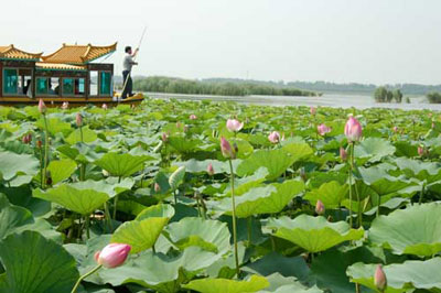 中廣網(wǎng)北京7月6日消息 東湖自然風(fēng)景區(qū),由于良好的生態(tài)保護(hù),至今仍保持著西周時(shí)期原始的自然風(fēng)貌,在這里可以領(lǐng)略到3000年前生態(tài)文化的絢麗多姿。景區(qū)水面7000余畝,碧波蕩漾,蒲葦婆娑,荷花飄香,鳥鳴魚躍,水草千姿百態(tài),水胡蘆隨風(fēng)飄浮。蕩舟湖中,你可看到“小荷才露尖尖角,早有蜻蜓立上頭”、“兩個(gè)黃鸝鳴翠柳,一行白鷺上青天”的動(dòng)人畫面。也可以看到“春水碧于天,畫船聽(tīng)雨眠”,“秋風(fēng)吹拂龍湖面,化出白蓮千萬(wàn)點(diǎn)”的美麗景觀。